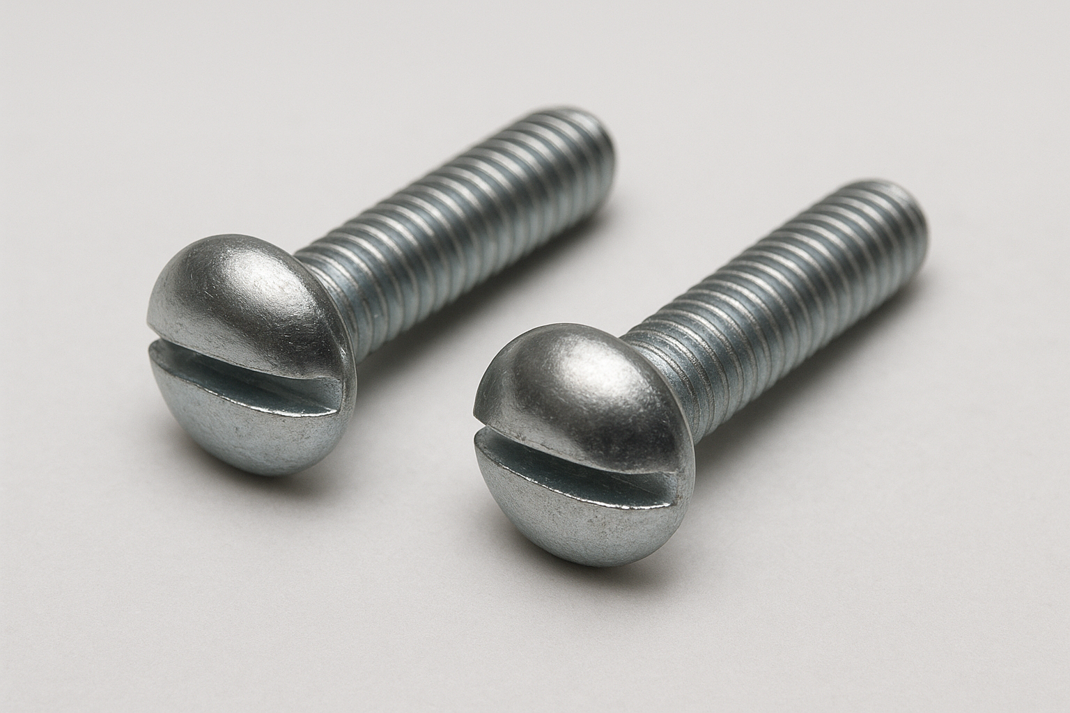 Slotted round head screws are among the most traditional and widely used types of fasteners in the mechanical and construction industries. Known for their classic design, simplicity, and functionality, these screws continue to serve a broad range of applications, from woodworking to light metal fabrication. Screws with machine threads for use with a nut or in a tapped hole. Machine screws that are slotted have the traditional slot that runs horizontally through the middle of the head and is intended for use with a flat blade screwdriver bit. Similar to the Pan Head Screw, but with a raised round head.